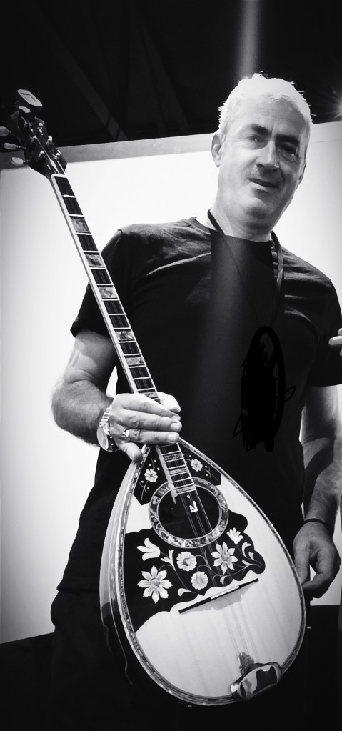 “Central to rembetika is the bouzouki, a long-necked lute with a round body and a flat top, which was brought into Ireland in the 1960s by the singer Johnny Moynihan and developed into the instrument now known worldwide as the Irish bouzouki. It features prominently in the post-traditional music of many Irish players, including, of course, Planxty members Andy Irvine and Dónal Lunny, who travelled to Paxos for the first Irish Wings.